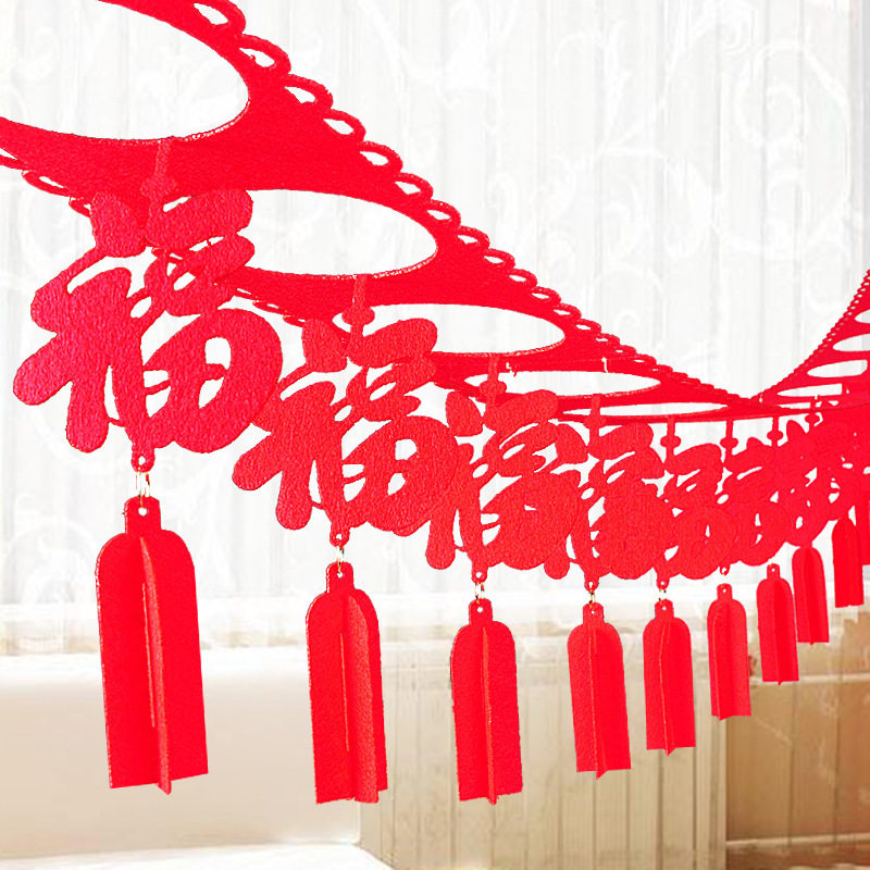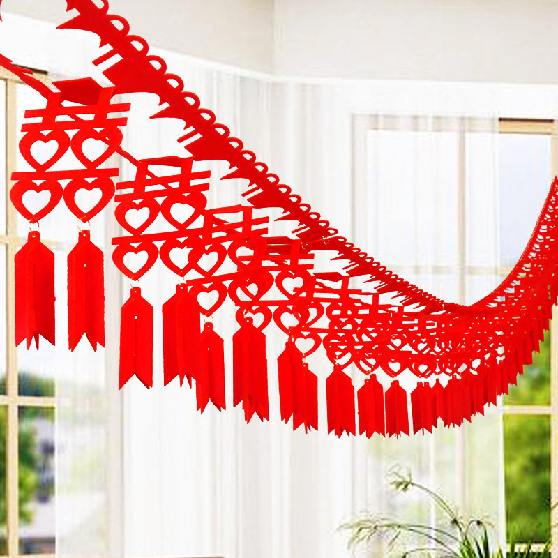 Non-woven fabric happy word blessing word spring character layout wedding celebration supplies wedding room living room room decoration wedding pull flower decoration