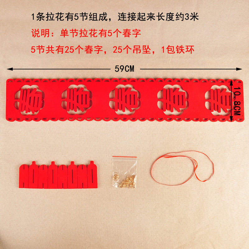3 meters of flower for happy word, 3 meters for word of spring for word of blessing, 3 meters for word of blessing