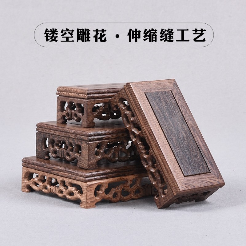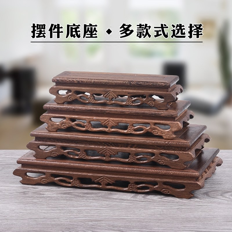 Chicken Wings Wood Base Red Wood Engraving Handicraft Swing Accessories Base Rectangular Solid Wood Chic Stone Flower Pot Buddha base
