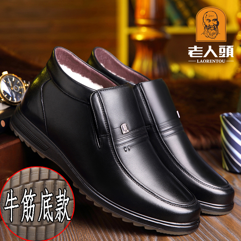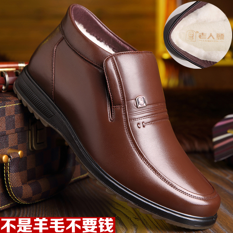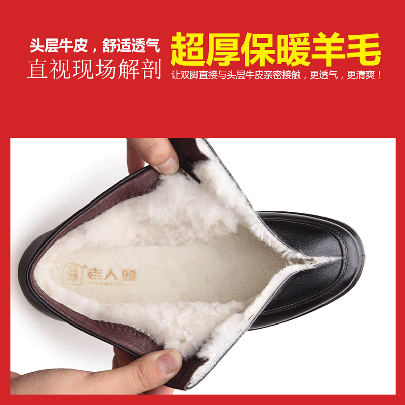 Old man's head men's cotton shoes winter real wool tendon bottom warm plus velvet genuine leather casual middle-aged and elderly dad men's shoes