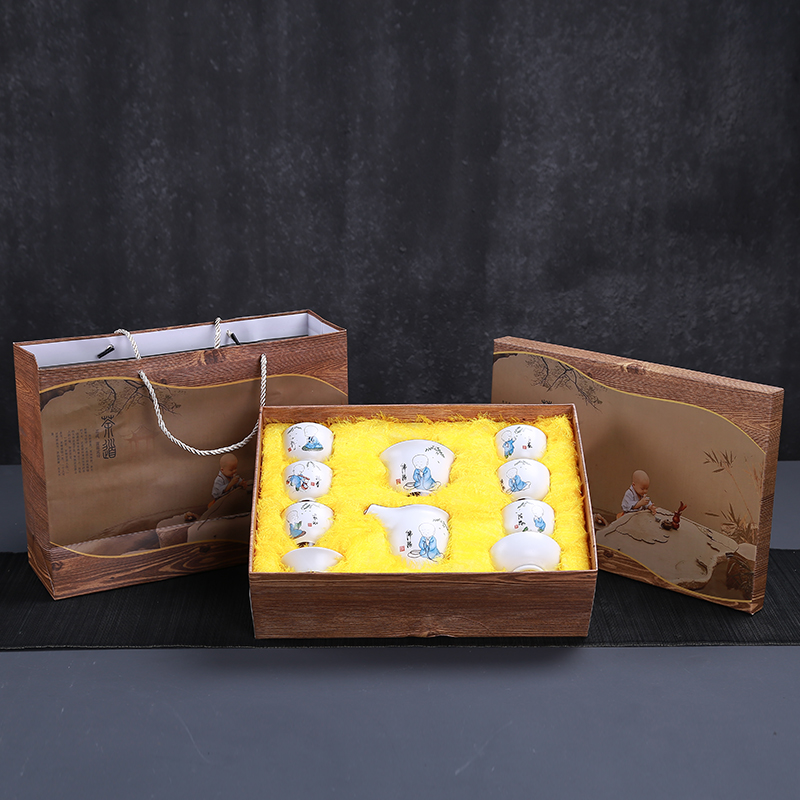 Customized gift package of Zen ceramic tea set for the matte glaze white porcelain tea set for the whole gift package of Zen ceramic tea toilet household kit