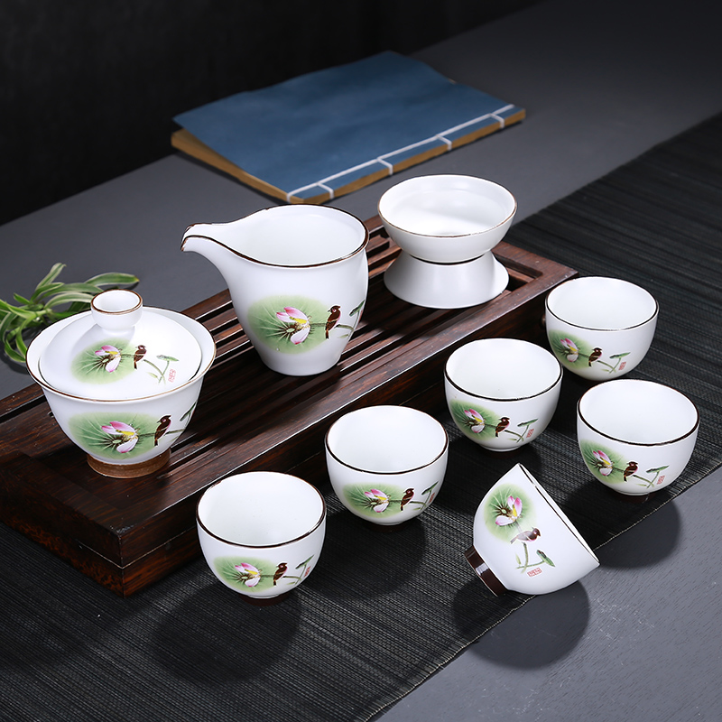 Six degrees tea fragrance full tea set Buddhist tea set Magpie Shaw whole tea set of tea set in mountain tea set bird floral fragrance tea set