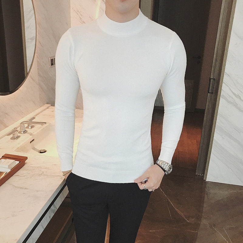 Spring and autumn semi-turtleneck sweater men's Korean version of the personality sweater solid color black sweater sweater men's fashion trend