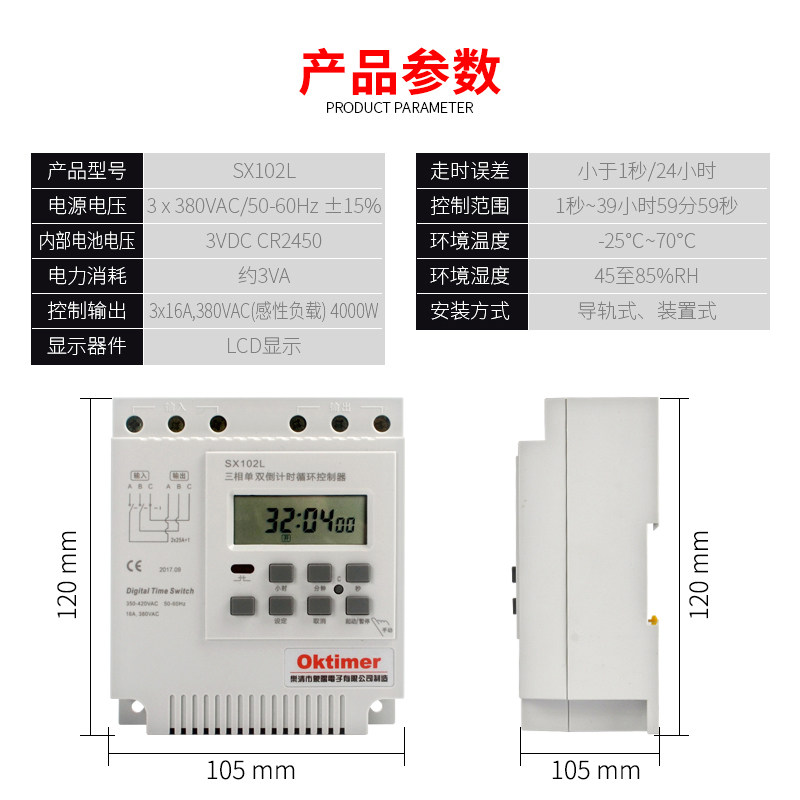 3-phase Microcomputer Automatic Single Double Countdown Water Pump Circulation Timer Automatic Power Down Time Control Switch 380V