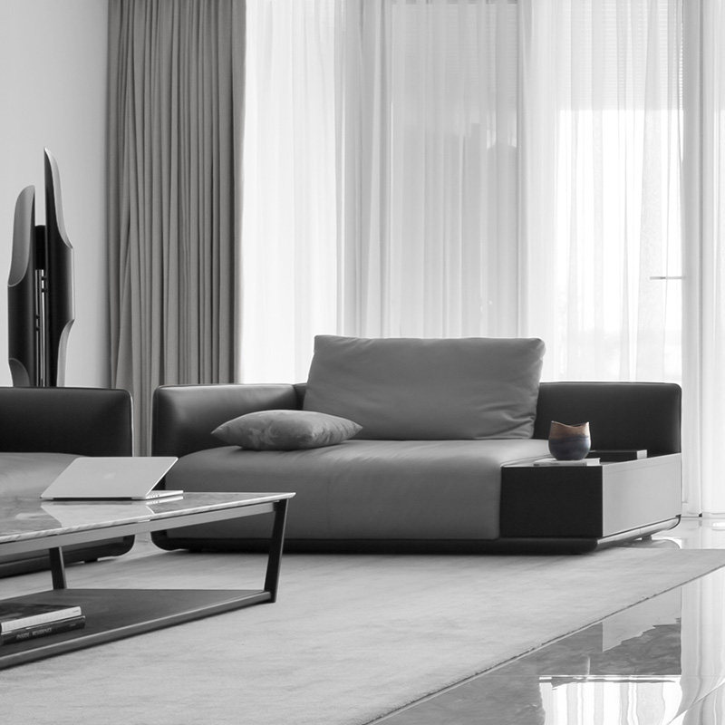 Italian simple modern leather fabric combined with thin armrests small apartment wooden box armrest combination corner large ELAN sofa