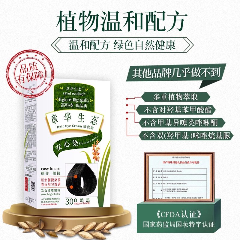 (3 boxes) Zhanghua ecological hair dye plant pure their own home hair dye cream does not hurt the hair to cover the white hair of men and women