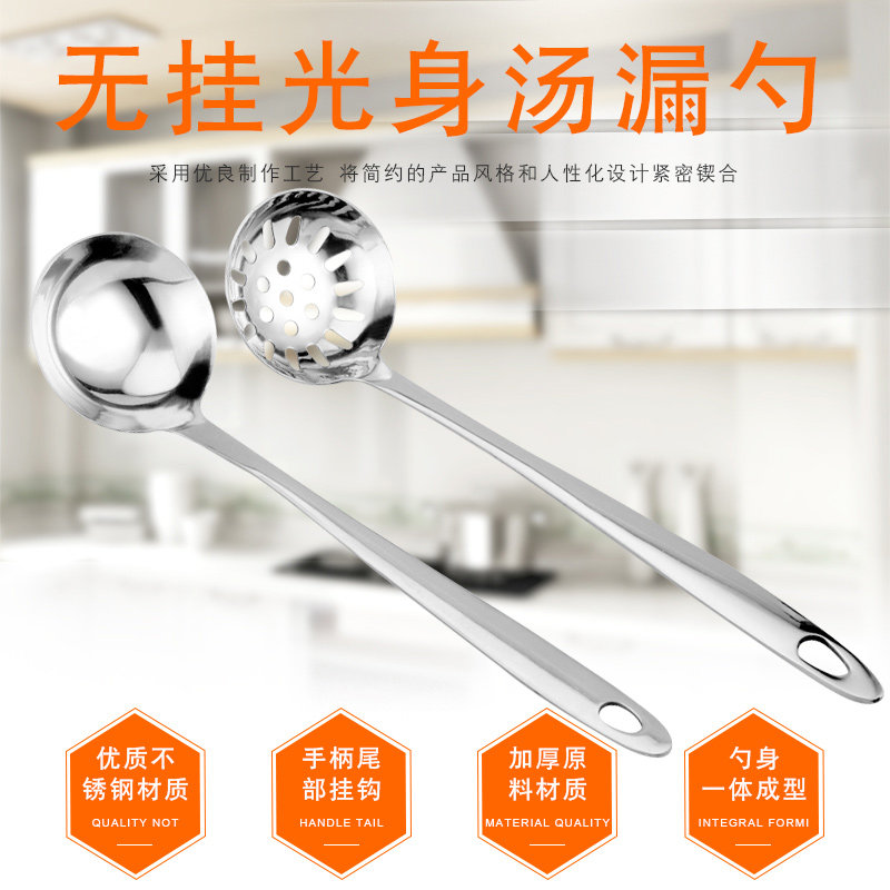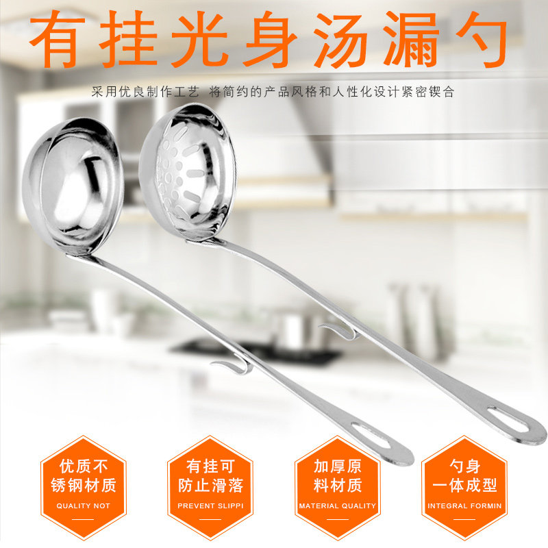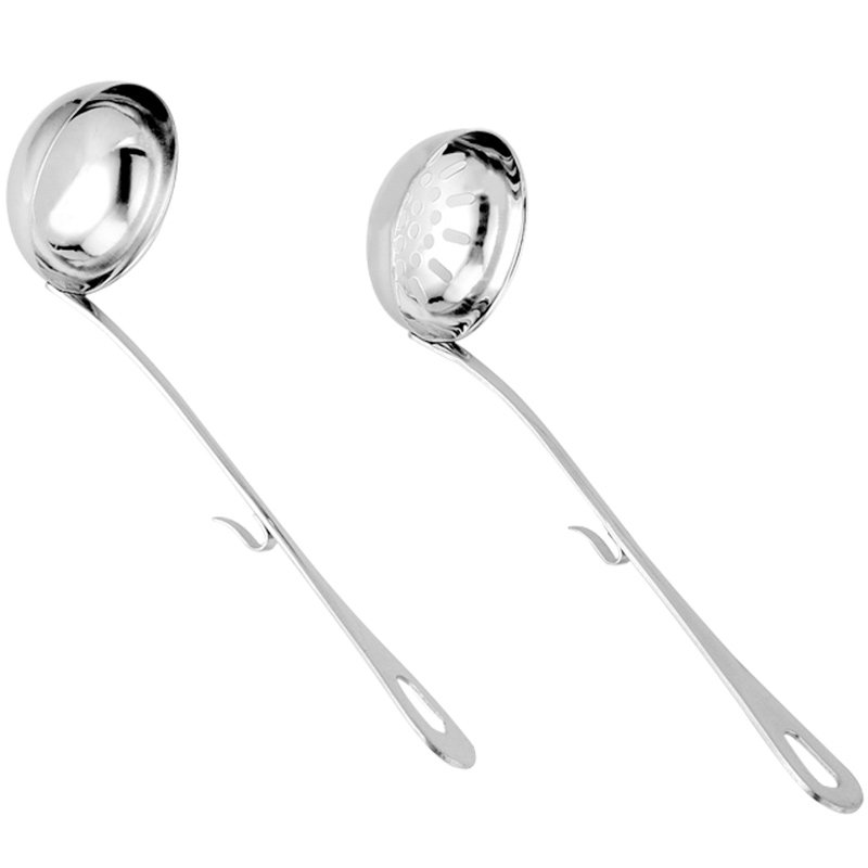 Victory Serda Light Body High Quality Stainless Steel Large Soup Spoon Full Soup Porridge Spoon Long Handle Hot Pot Spoon Handle Hook leaking spoon