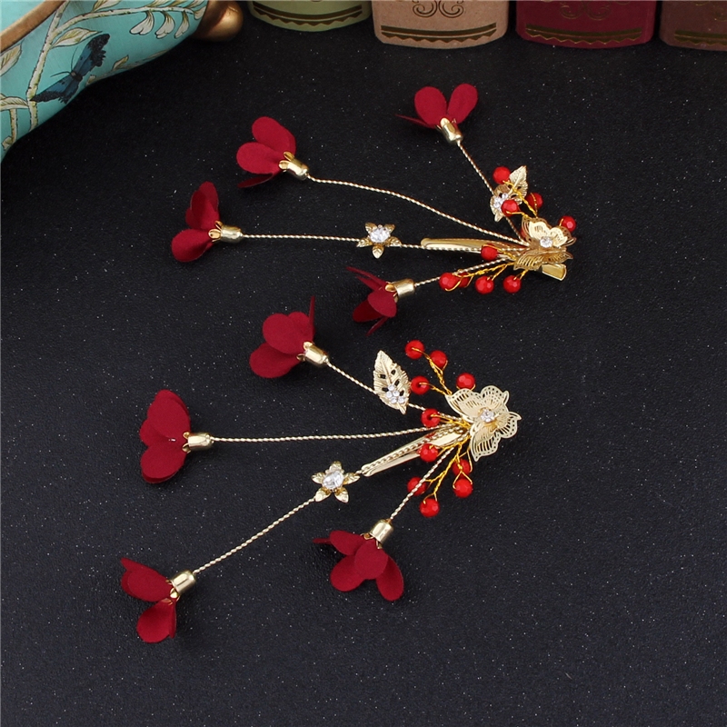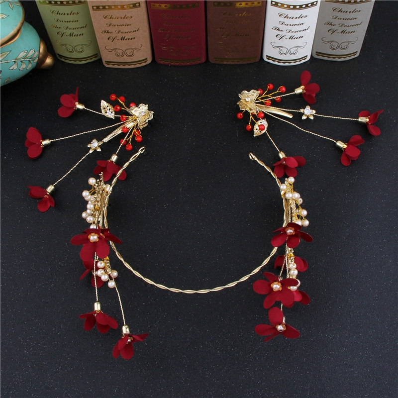Bridal wedding crown Korean red wedding hair accessories Super fairy flower earrings jewelry Forest hair band headdress set