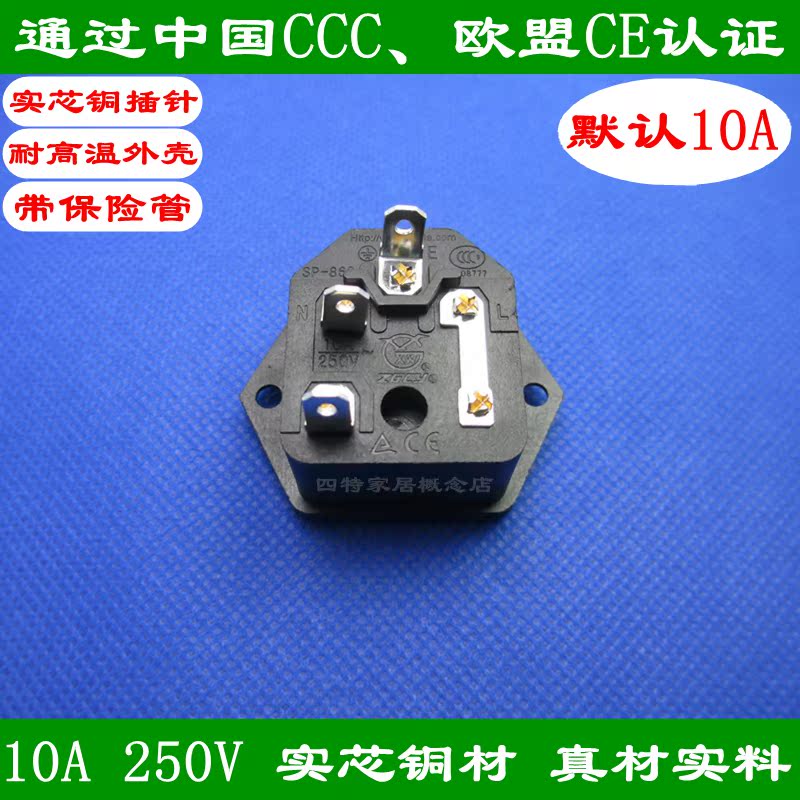 AC power socket two-in-one with Fuse tube SP-862 fixed ear pure copper high temperature resistant 10A250V