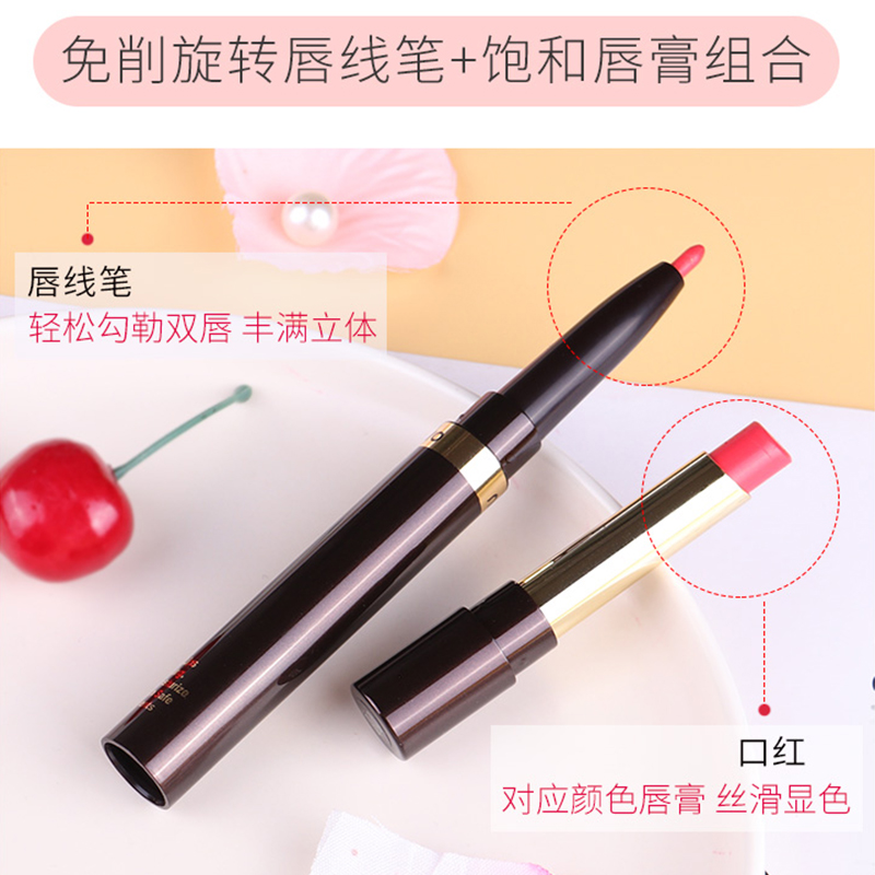 Double head lip red plus lip line Pen waterproof Persistent moisturizing not to drop color No to cup Painting Lips God Instrumental Lip pennies