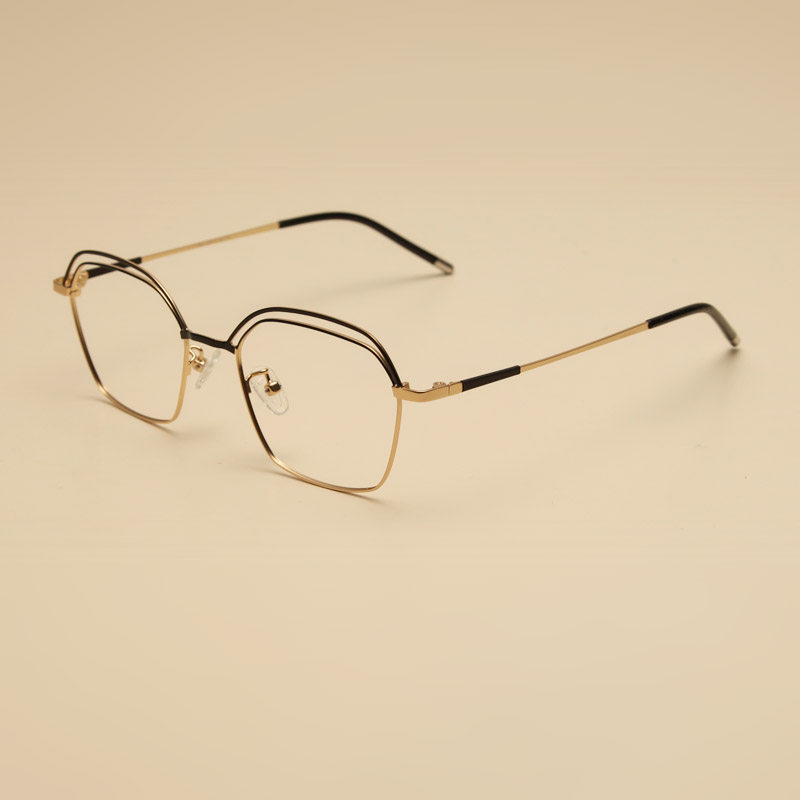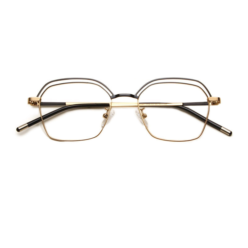 Polygonal eye frame Female Korean version Tide Retro black metal can be matched with myopia irregular anise man's large round face glasses frame