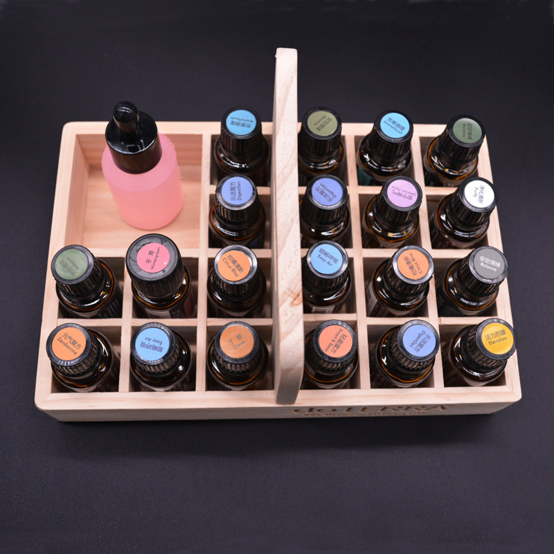 21 compartment storage wooden box carry basket wooden lattice display stand suitable for doterra essential oil 5ml-15ml