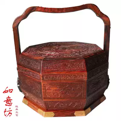 Redwood red sour branch basket food box solid wood Chinese antique multi-layer household split with lid snack wedding fruit box