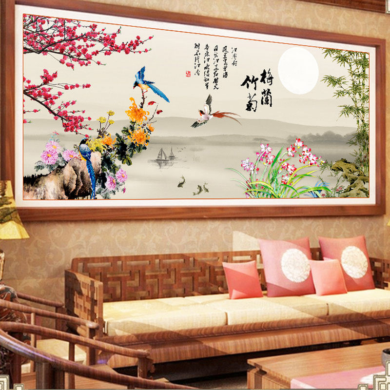 New cross stitch 2022 living room new large-scale thread embroidery 3D printing plum orchid bamboo chrysanthemum scenery plum blossom Chinese style