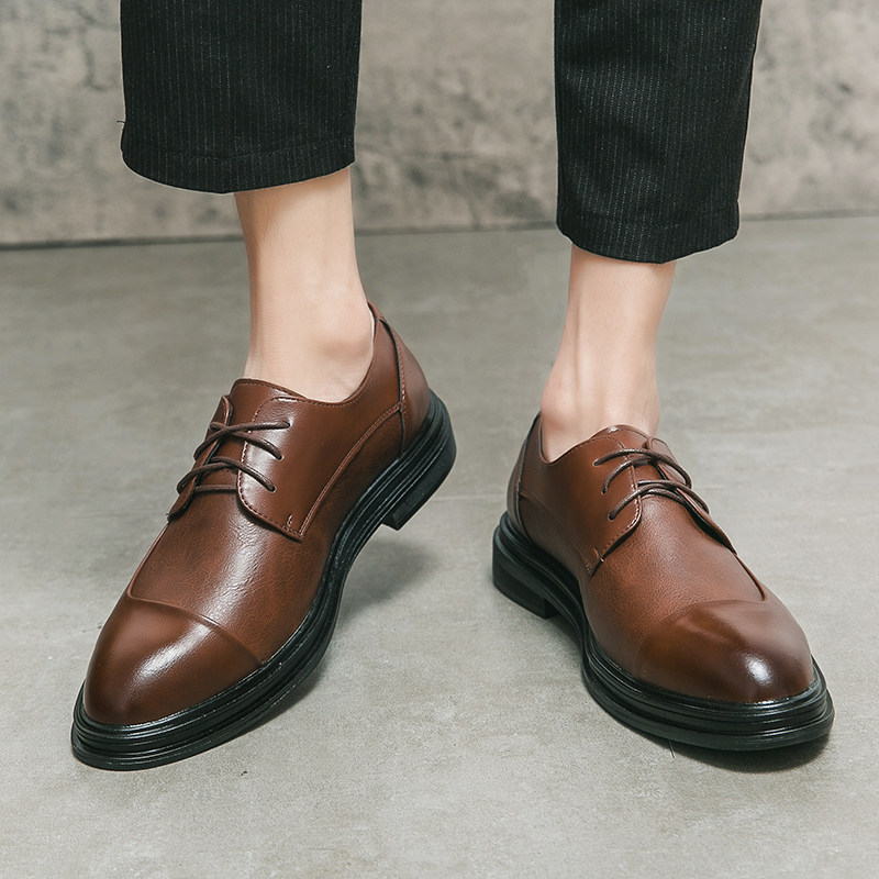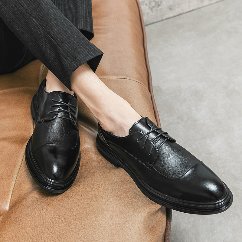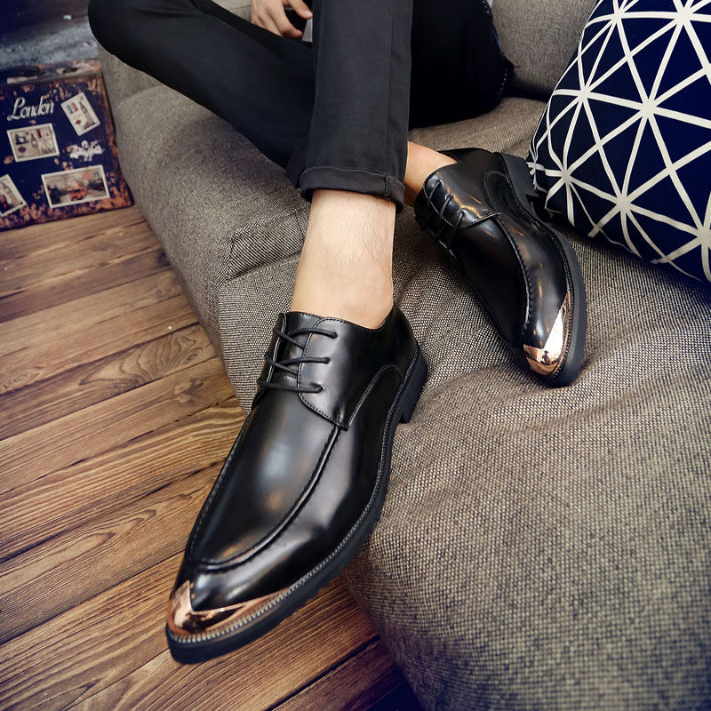 Summer leather shoes men's pointed hair stylist Korean version trend British business formal casual men's shoes groom wedding shoes