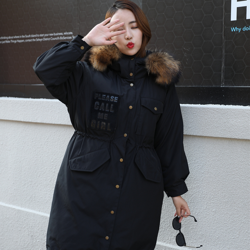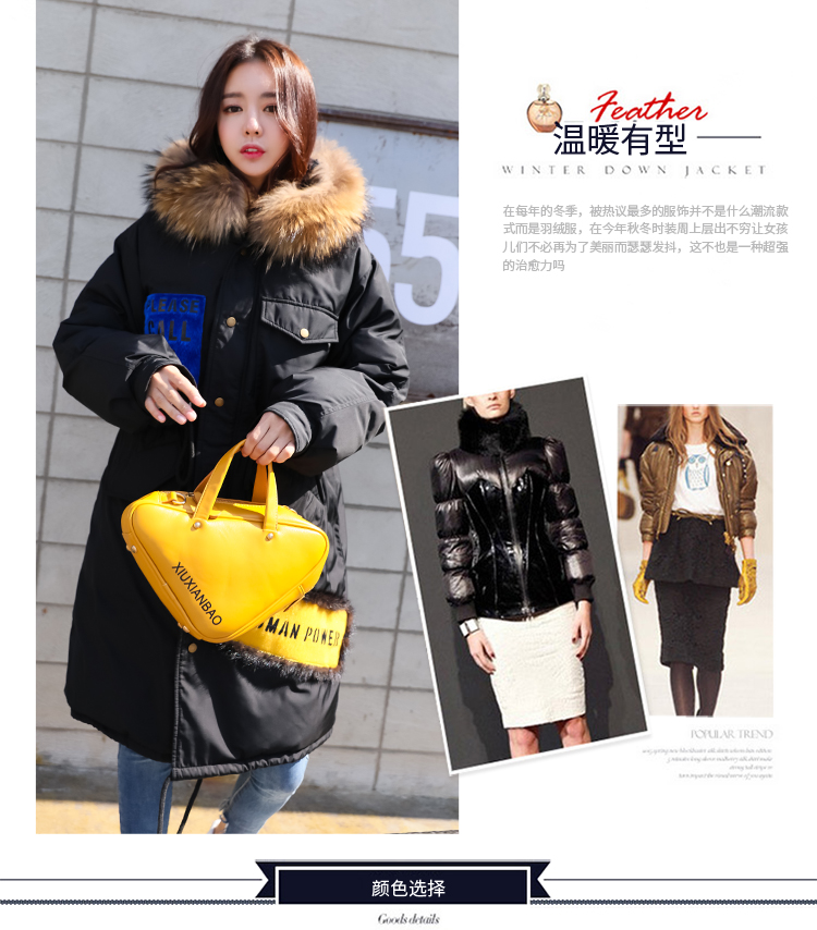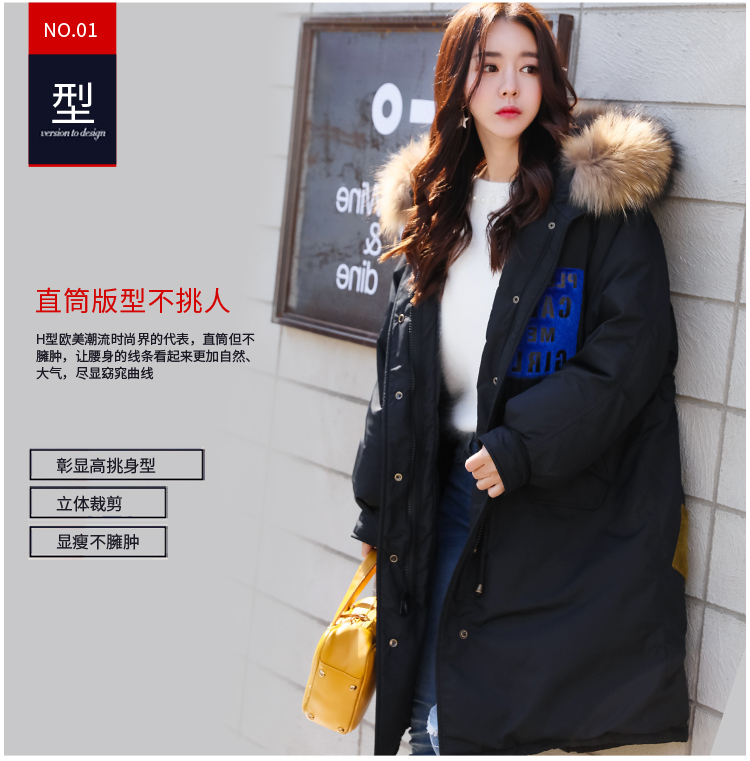 South Korean big fur collar down jacket for women's medium long version 2017 new winter dress Korean version with cap over lap waist thickened jacket
