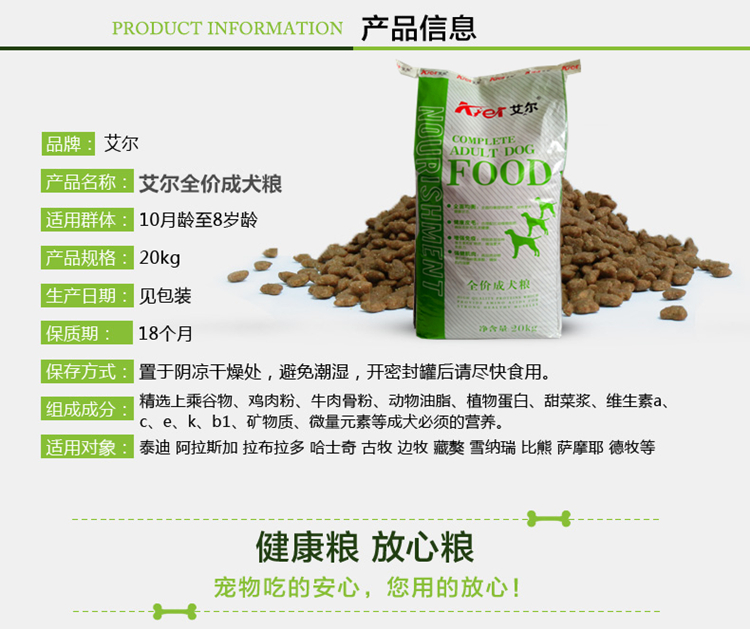 Ayre dog food golden retriever Labrador husky Alaska universal 20kg nutrition adult dog special hair