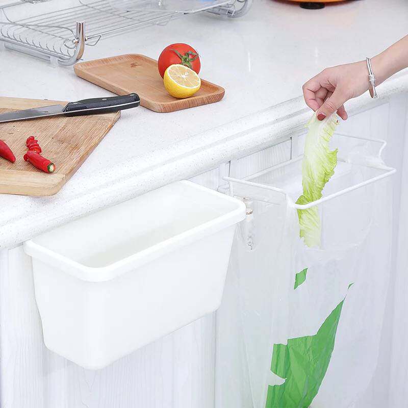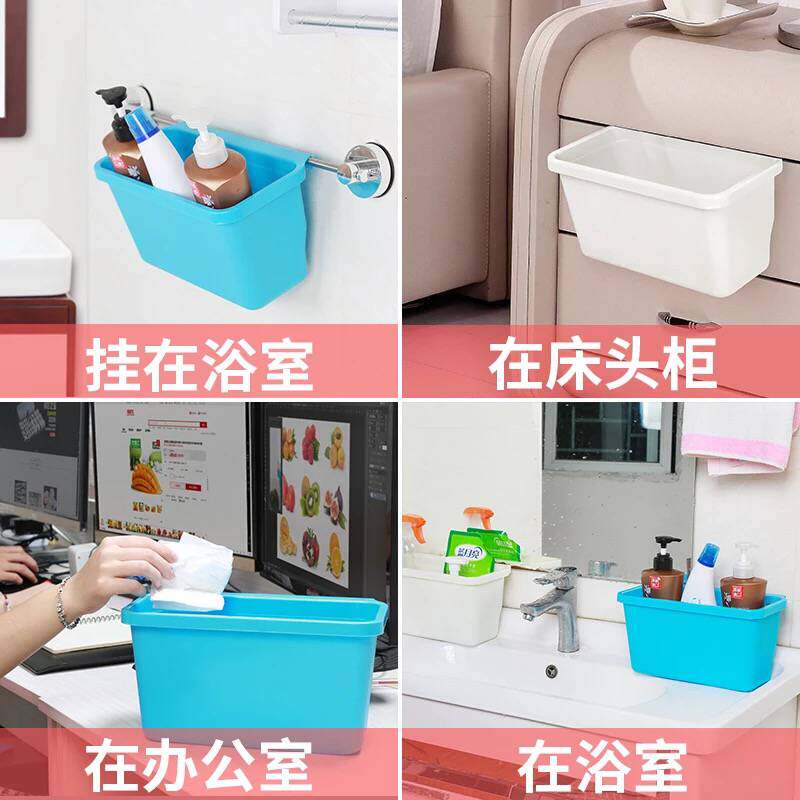 Two white trash cans Two blue trash cans Two pink trash cans Hanging trash cans White towel rack Hanging towel rack Hanging trash can (blue) garbage rack Towel rack