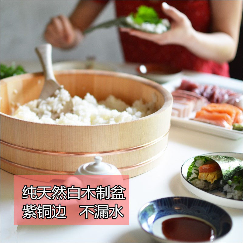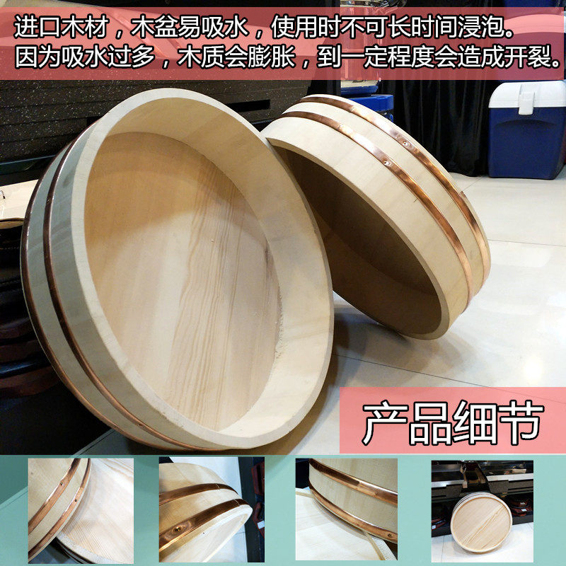 Sushi wooden basin large capacity of large wooden barrel without lacquer plate commercial household purple copper barrel wooden palm