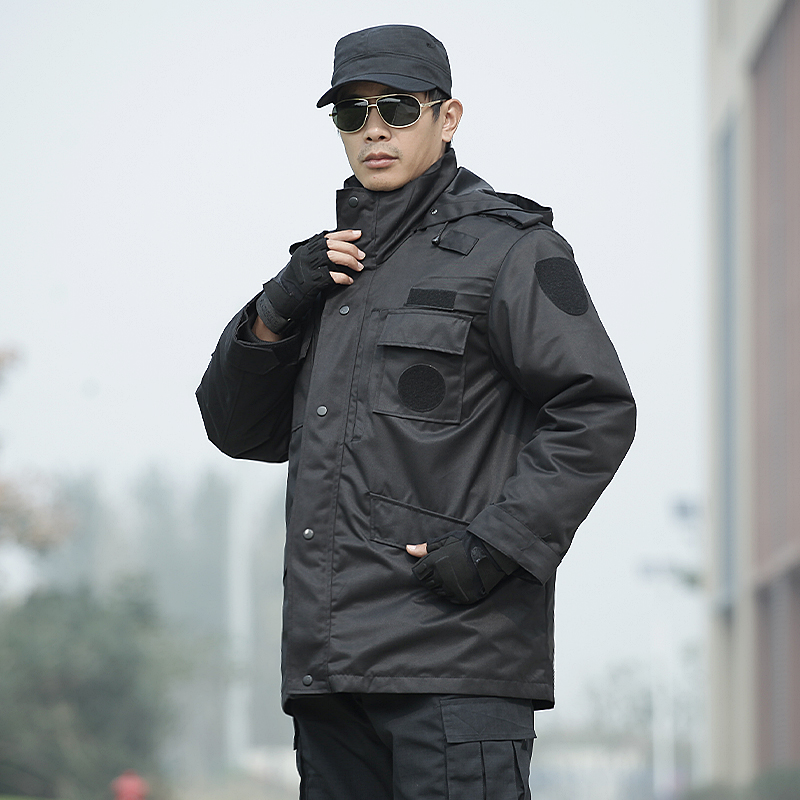 Quilted jacket coat Men's winter thickened war training uniform cold cotton coat Security cotton coat jacket medium and long version of the security suit