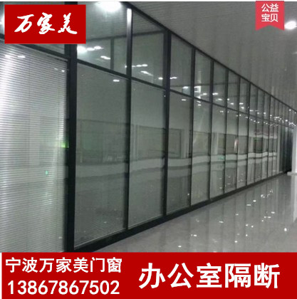 Ningbo office plant glass high partition wall Aluminum alloy screen Tempered glass with louver sound insulation partition board