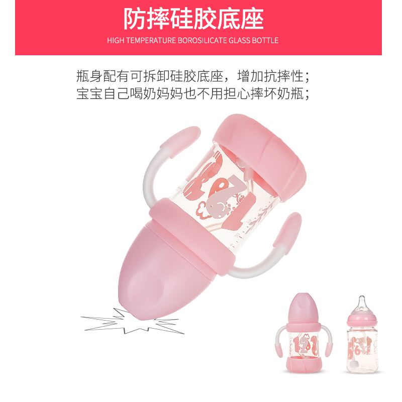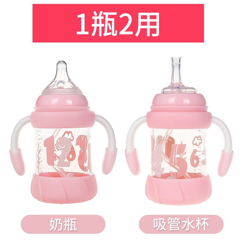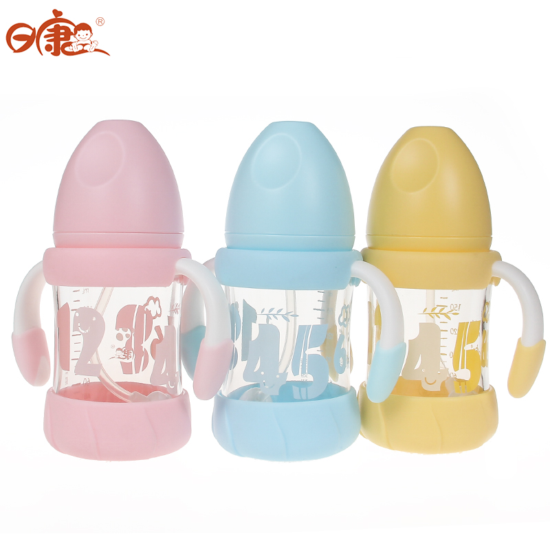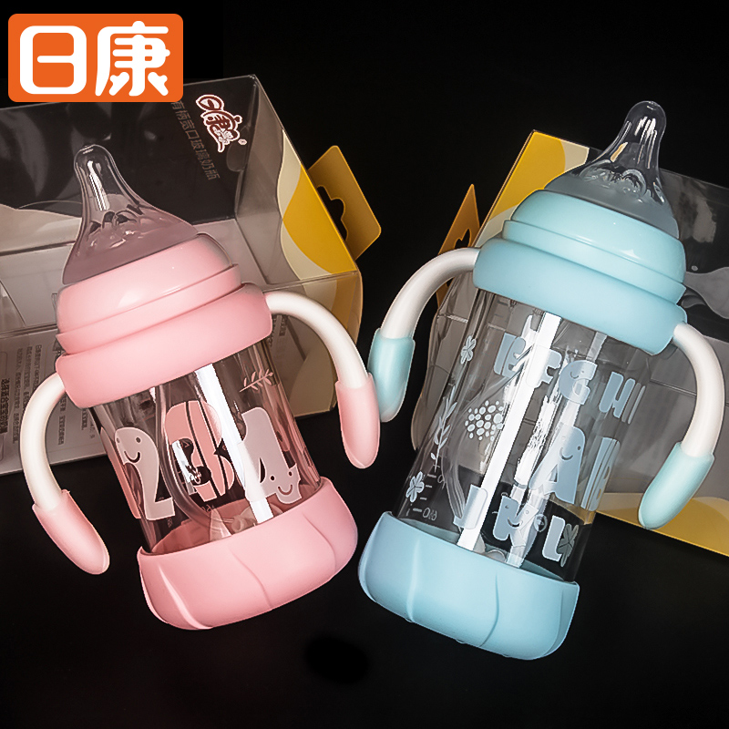 Rikang feeding bottle newborn baby feeding bottle glass wide-caliber baby with handle straw protective cover anti-fall resistance
