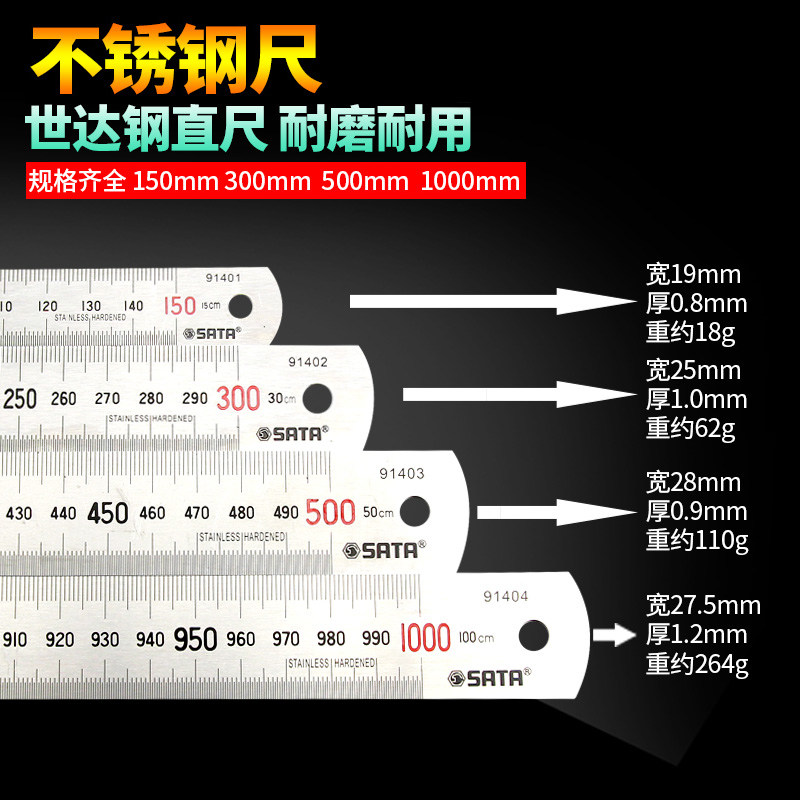 Stainless steel foot 15CM steel plate 30CM 50CM scale 100CM scale 100CM steel angle size 91401