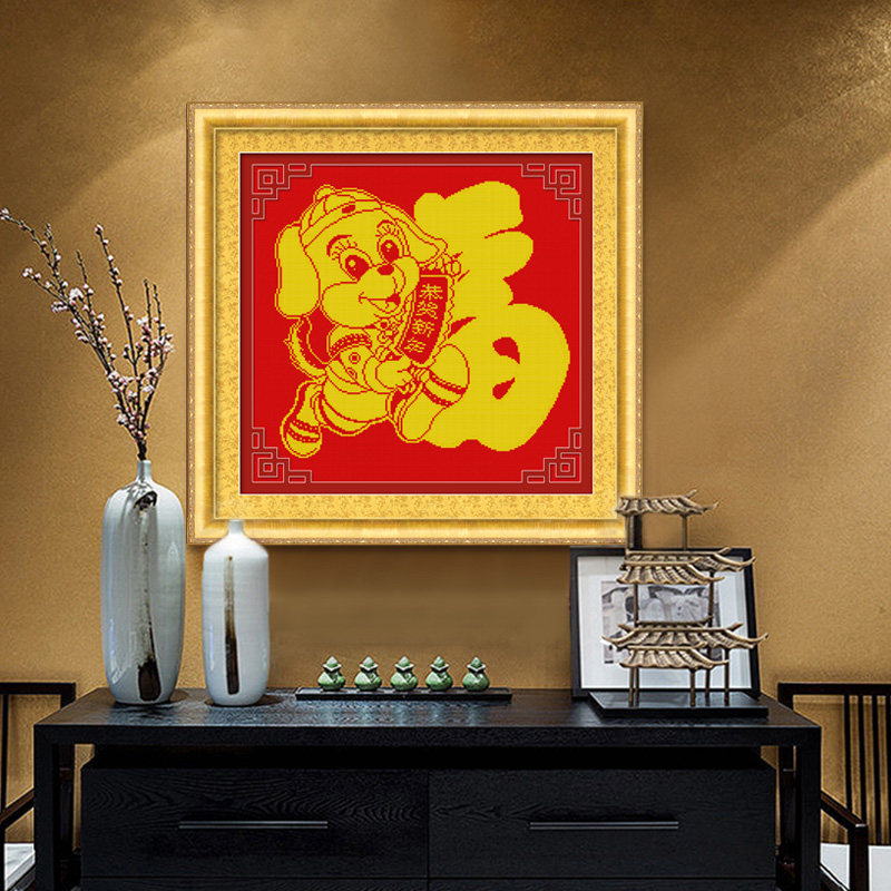 Cross stitch 2021 New thread embroidery dog year Lucky word living room bedroom own embroidery hand small simple embroidery small pieces