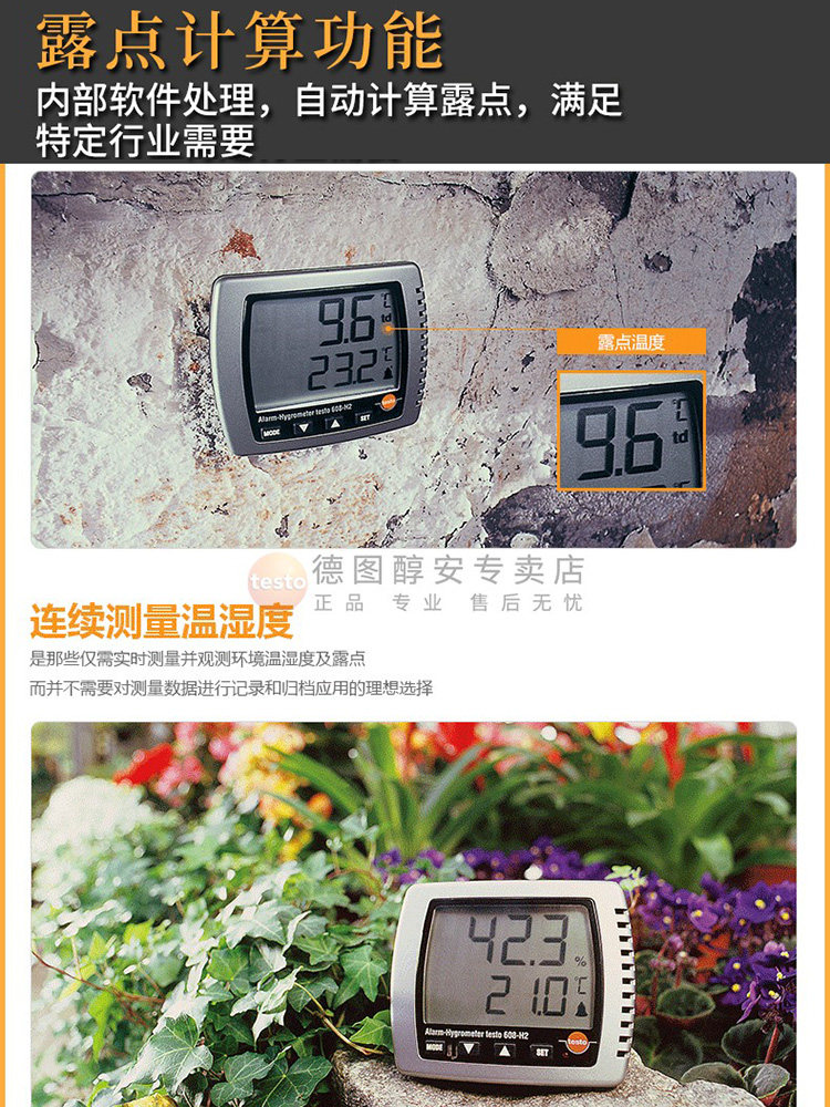 Deto temperature and humidity meter testo608H1 -H2 electronic indoor temperature and humidity meter high precision industrial household Germany