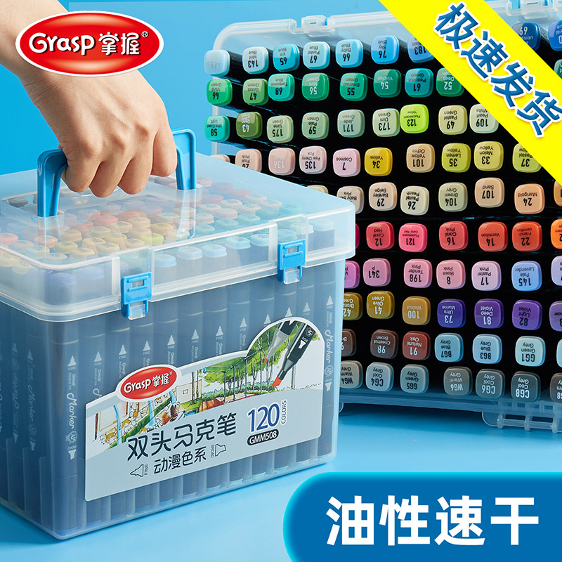 Master touch double-headed microphone set 24-color 48-color primary school students' hand painting animation design special alcohol oily triangle brush 80-color 120-color art watercolor pen
