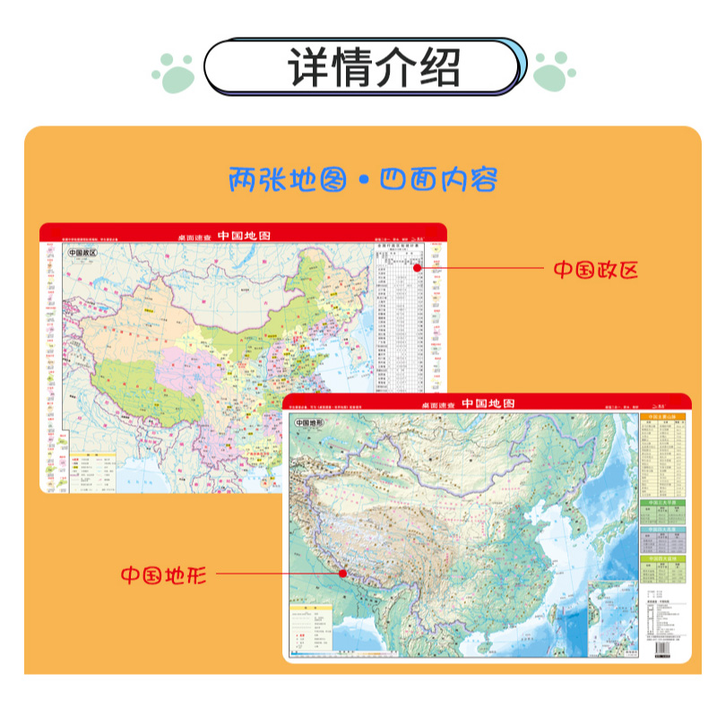 (total 2 sheets) 2022 New version of China topographic map World topography Map World Terrain Map World Flags Waterproof and erasable Erasable Learning Geodesktop Speed Check (press film torchup)