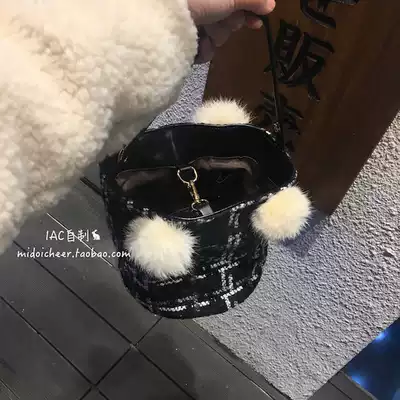 Winter limited(rabbit's small tail portable oblique cross woolen bucket rabbit hair bag)=IAC cooperation and self-made