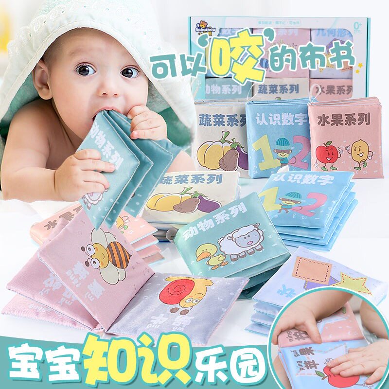 Baby Enlightenment Book(6 books) Hand grab balls 6 sets of 3 sets of solid gear (content random) baby Book Bey Ann Book independently fitted 5 water canvas A water canvas B