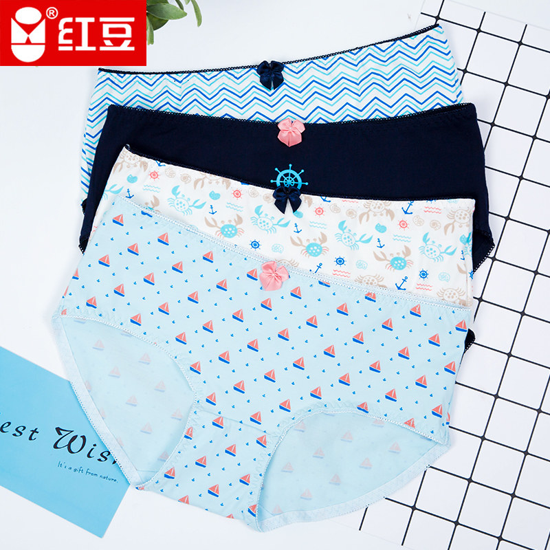 4 pieces of red bean pure cotton women's low-waist bottoms and shorts 100% cotton high school junior high school students briefs