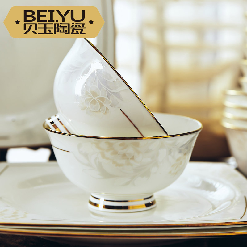 78 European-style ceramic tableware Luxury American bone China dish set Household Jingdezhen chopsticks bowl plate combination