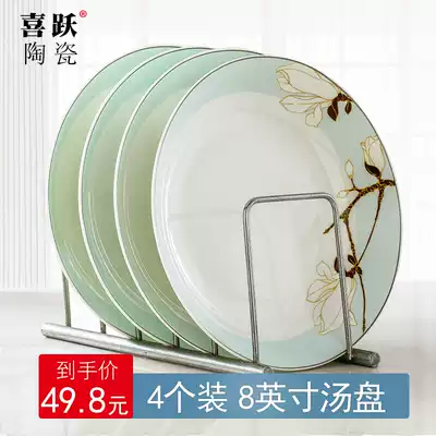 (4 packs) Jingdezhen plate rice soup plate tableware ceramic steak plate dish set household combination