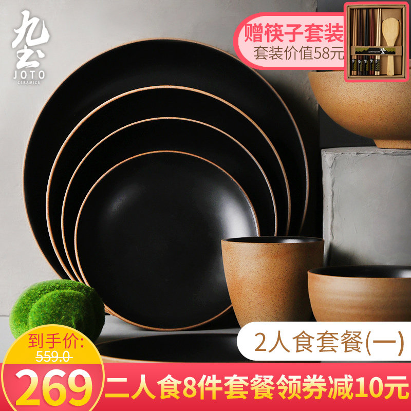 Nine-earth hand-made day style coarse pottery cutlery suit lovers home rice bowls swings pan retro creative Eight-pieces suit-Taobao