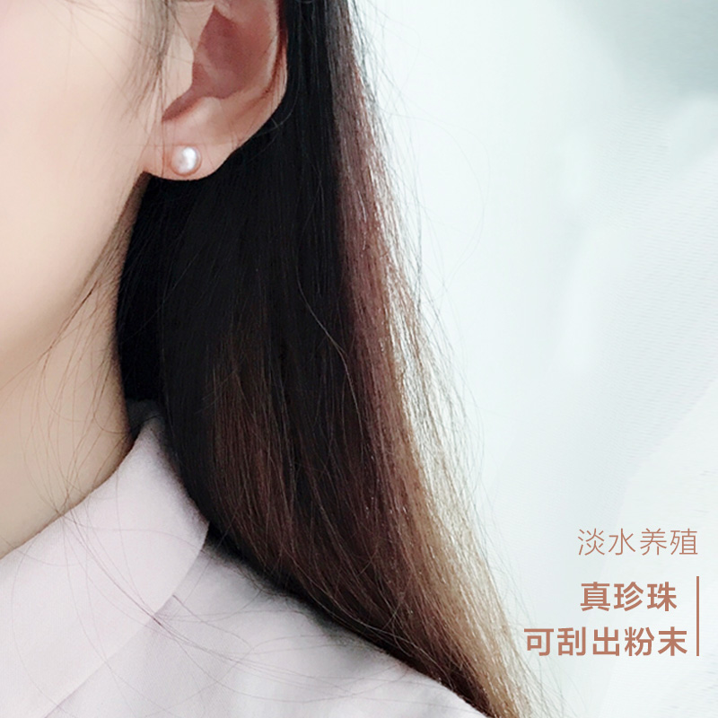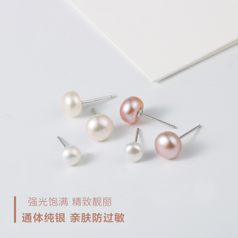 925 pure silver natural fresh water pearl earnail female earring with fresh and simple ear-pin temperament Korean personality earrings