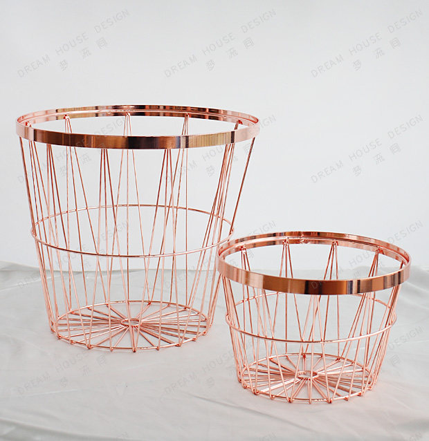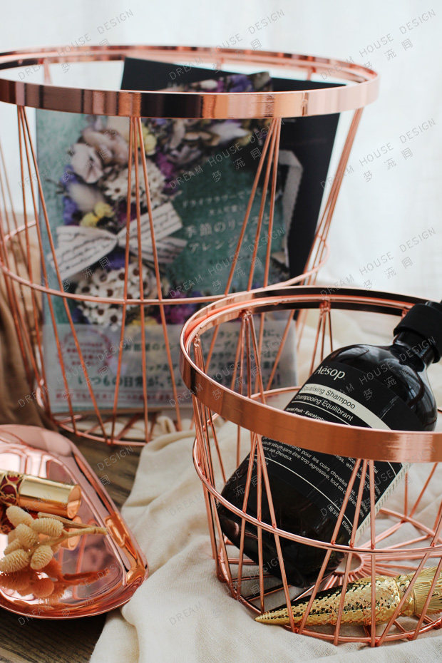 Storage floor Nordic Wind Iron Art Rose Gold Plated Tabletop Debris Ornament Containing basket Fashion shooting props