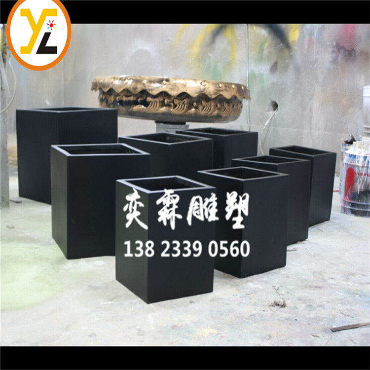 Black Square Fiberglass Flower Pot Hotel Sample House Display Center Beauty Chen Mall Combined Flower Box Gardening Planting Flower Boxes
