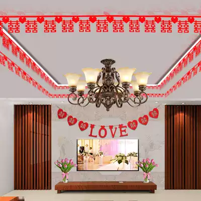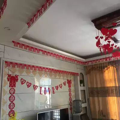 Wedding decoration, new house decoration, wedding room decoration, Hi word curtain, non-woven cloth, flower, hi word, flower decoration