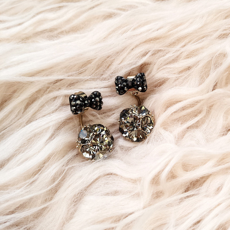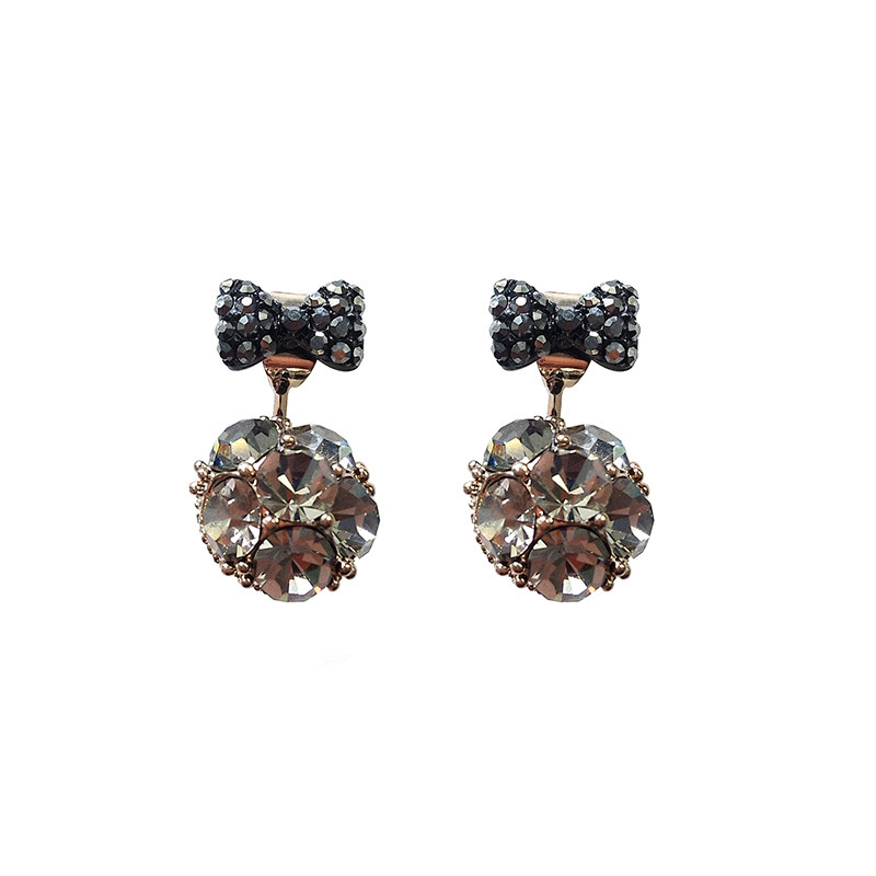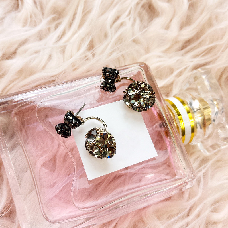 Quiet bow full diamond ball Silver needle Bow full diamond ball