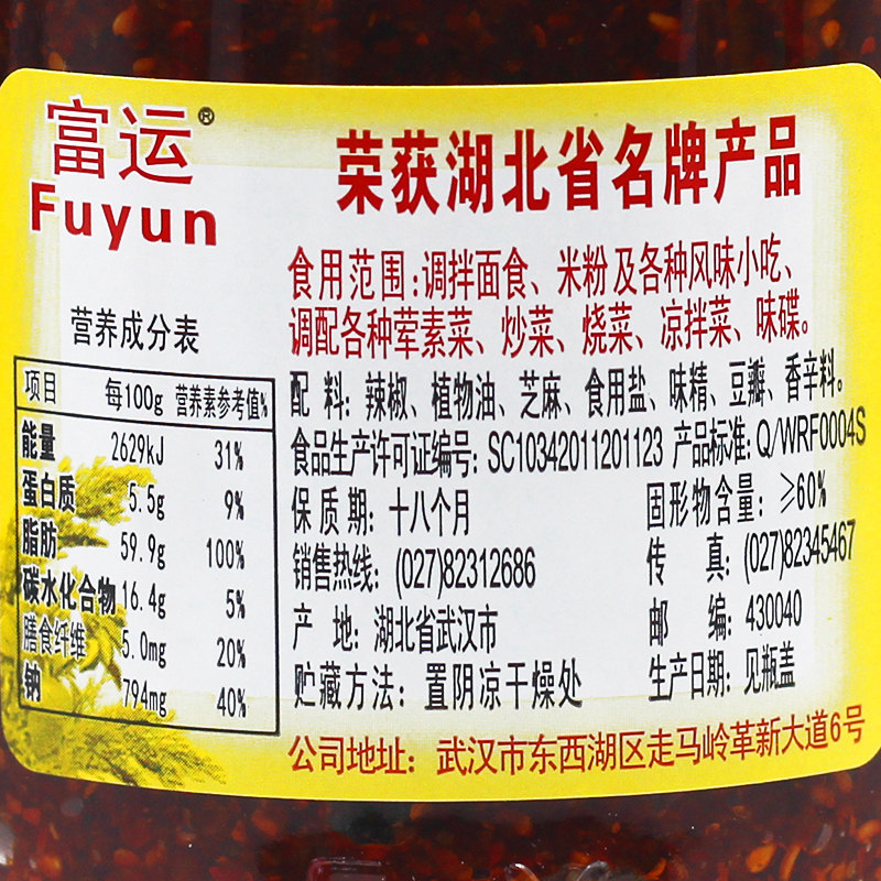 Fuyun Spicy King 238g*2 bottles of spicy coleslaw seasoning oil Spicy seed oil Spicy chili sauce