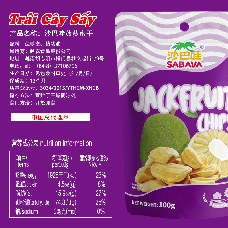 Sabah Wow imported jackfruit dried 100gx3 small package fruit crispy dried snacks Vietnam specialty jackfruit dried fruit