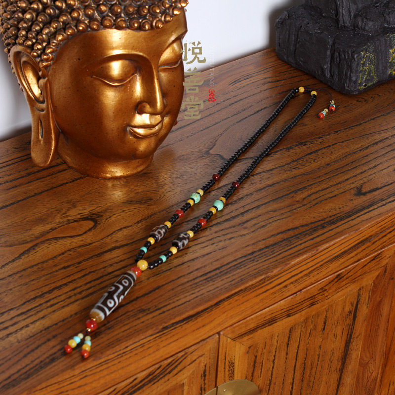 Original design Tibetan nine-eye old dzi bead sweater chain natural turquoise beeswax southern red necklace fashionable and versatile