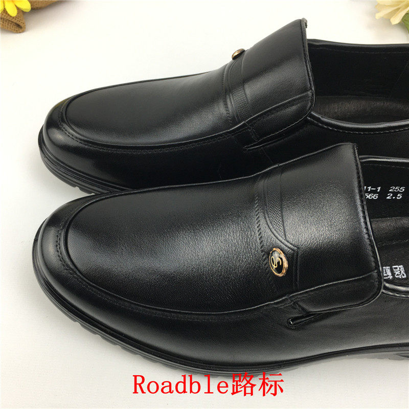 Road Signs Fashion Business Gentleman Casual Round Head Set Foot Daily 100 Hitch Flat Bottom Aged Men's Single Leather Shoes