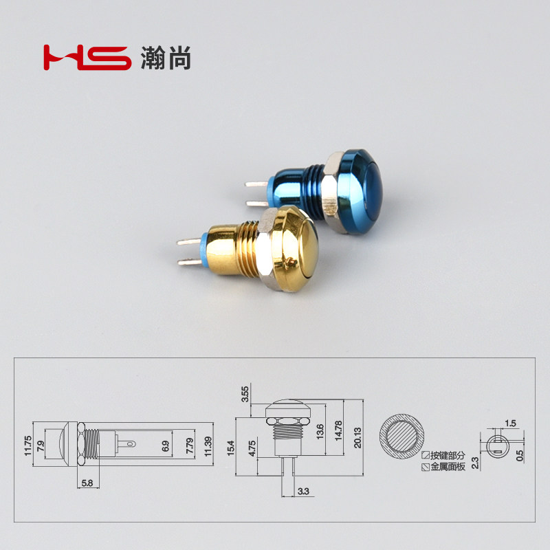 HJS8E ultra-small mini waterproof metal push button switch drilling 8MM jog self-reset 2A 36V
