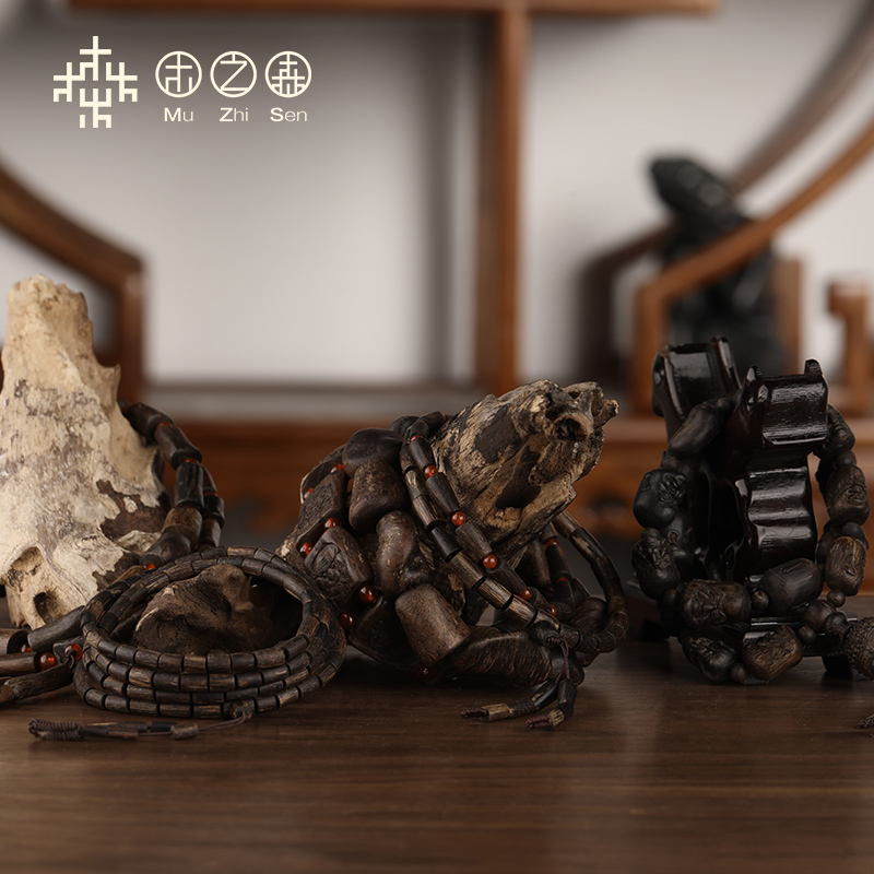 Live Kangkang fidelity Agarwood Buddha beads hand string D wooden agarwood bracelet hand string rosary beads