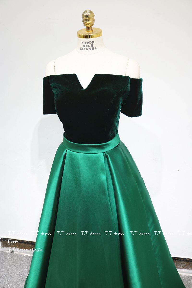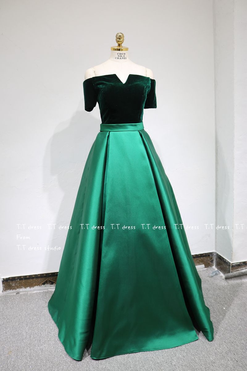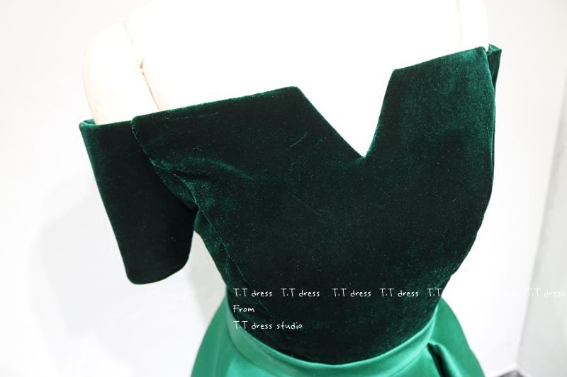 Slim one-shoulder annual meeting evening dress birthday dance banquet celebrity performance fashion dark green bridesmaid group sisters skirt