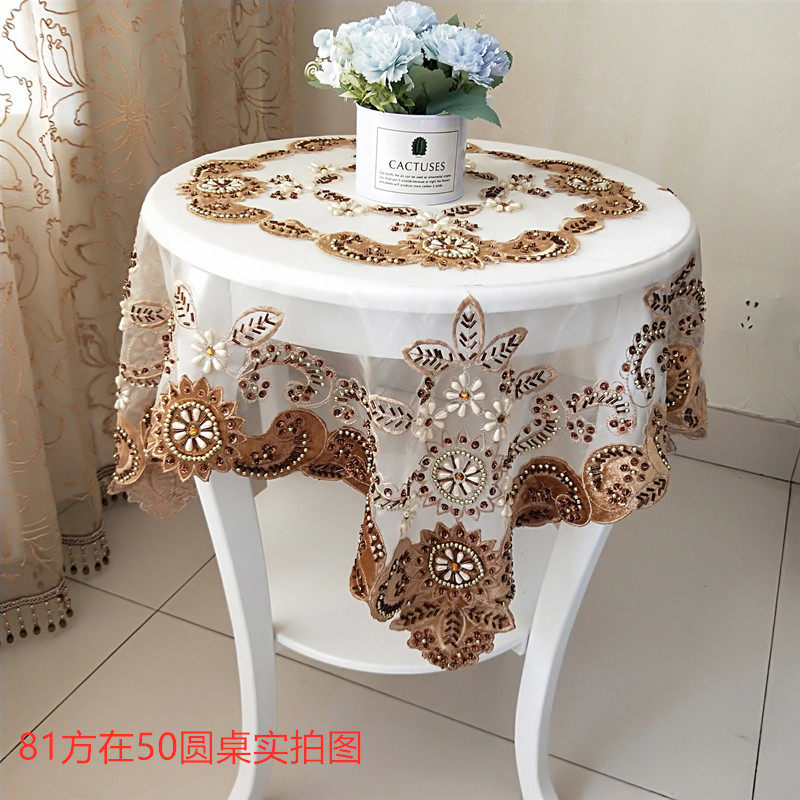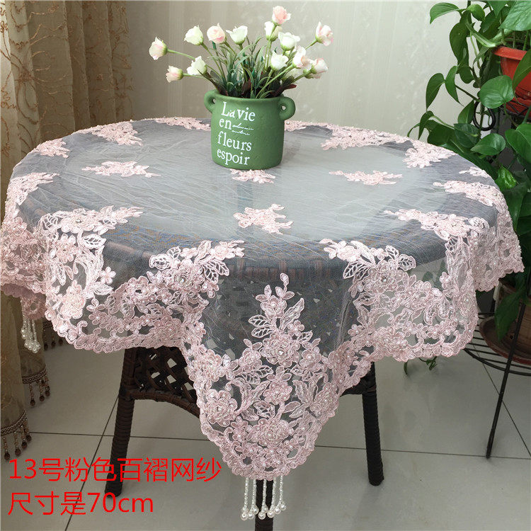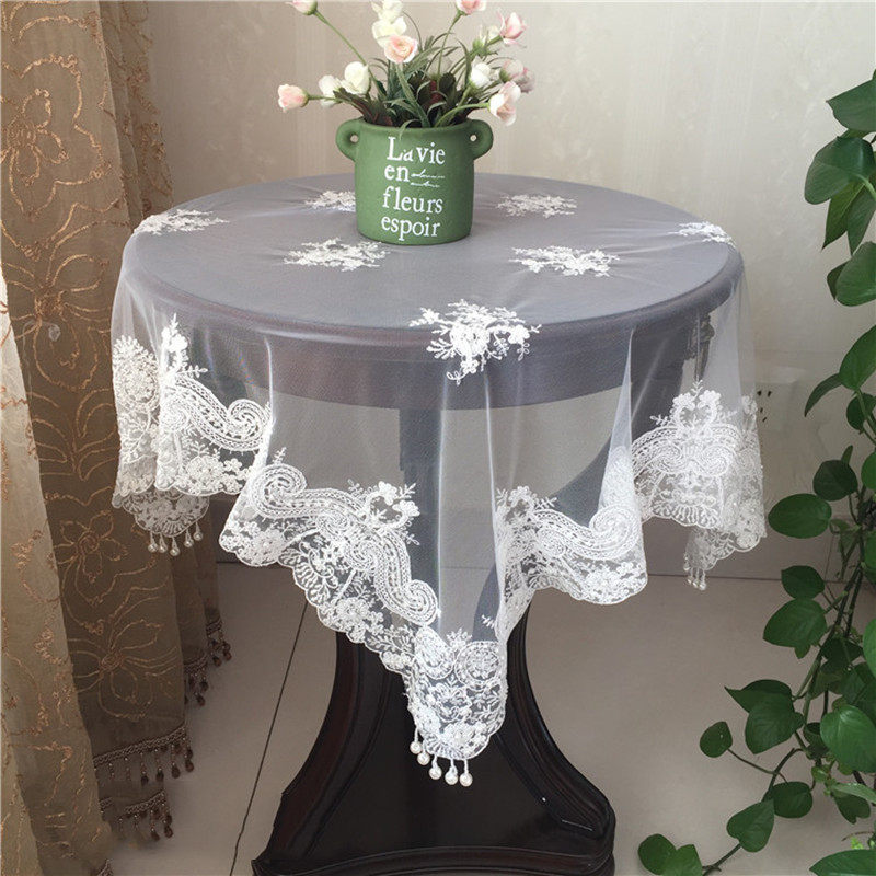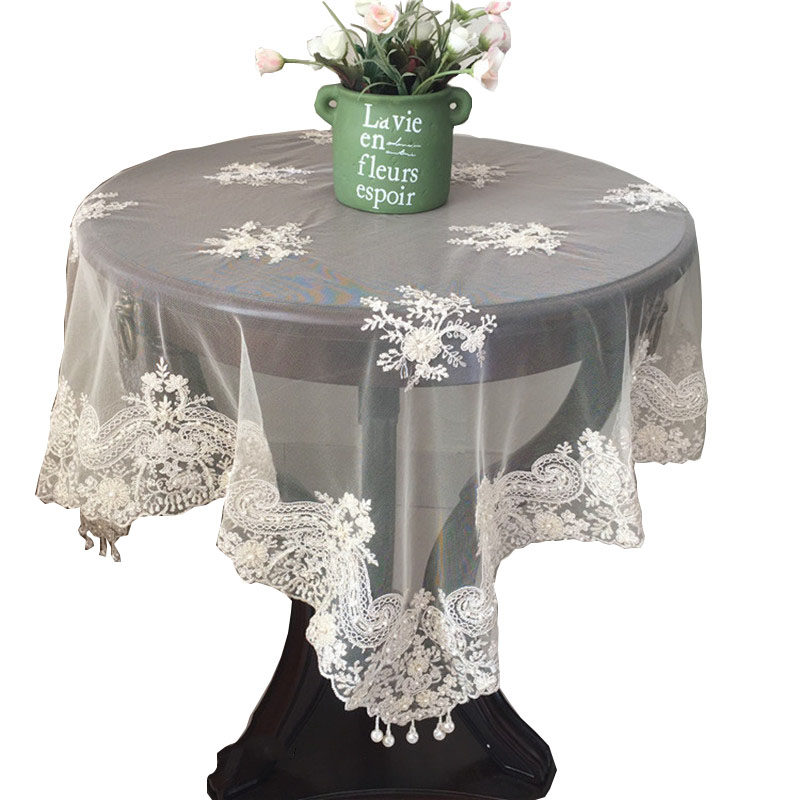 New Korean-style lace tablecloth round white mesh handmade beading washing machine refrigerator decoration fabric universal cover towel - Taobao